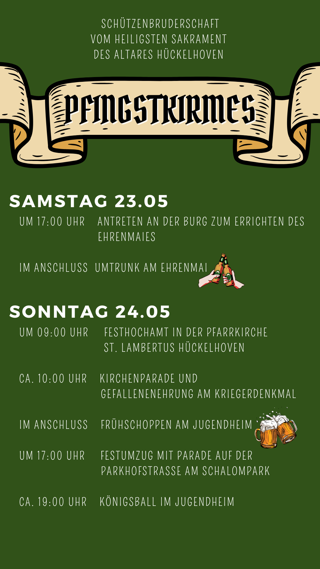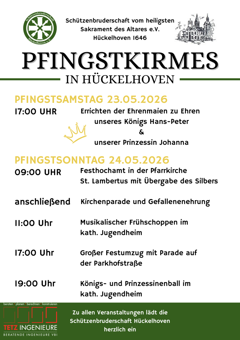 Die Schützenbruderschaft vom heiligsten Sakrament des Altares Hückelhoven ist seit 1646 eine feste Größe im Vereinsleben der Stadt. Wir pflegen Tradition, Gemeinschaft und Brauchtum mit Leidenschaft.